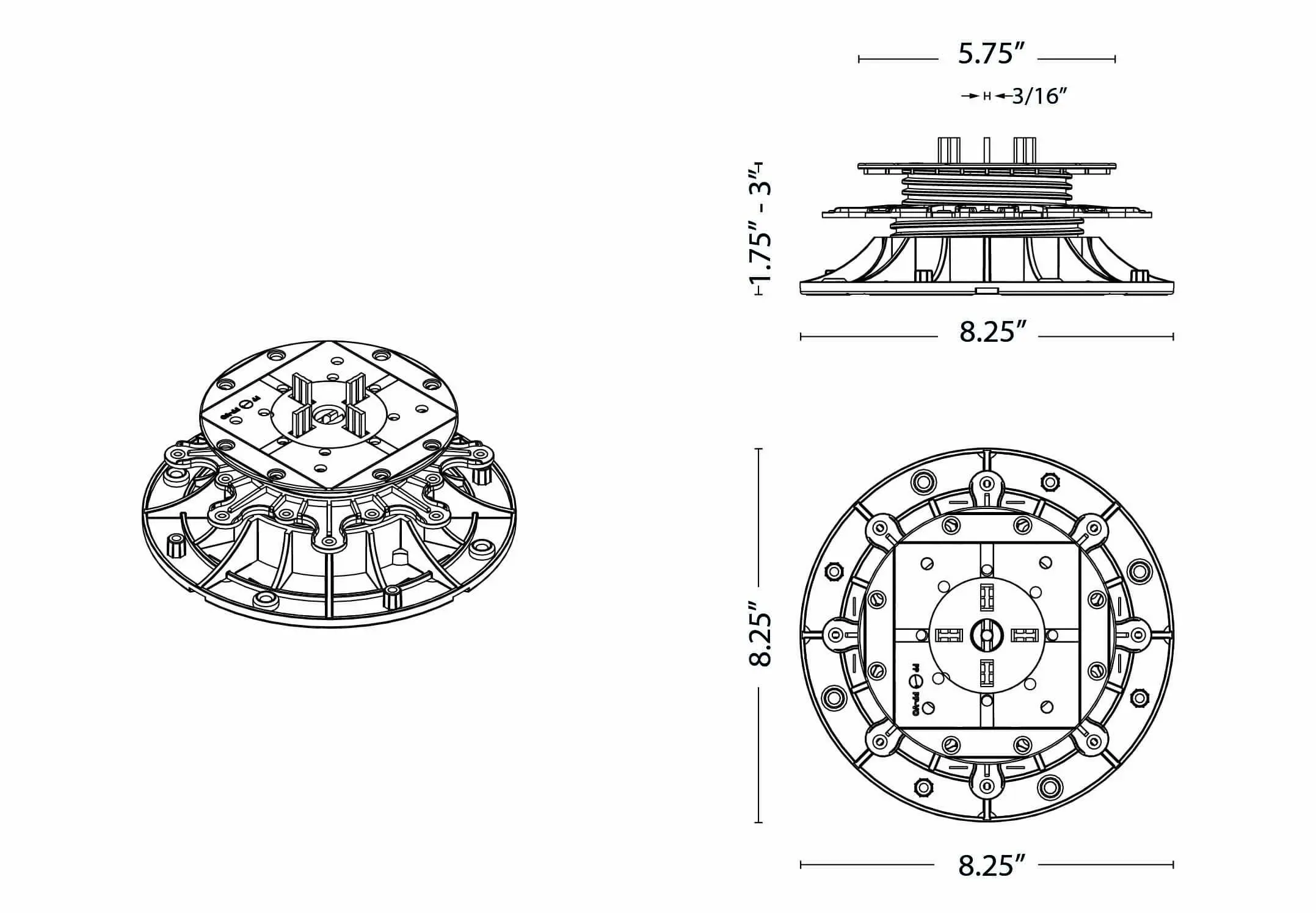 SkyJack SD-M 1.75″ to 3″ Adjustable Pedestal supports heights from 1.75″ to 3″, making it ideal for mid-range rooftop deck installations. With a 2,150 lb. load capacity, built-in spacer tabs, and tool-compatible height adjustment, it’s perfect for leveling porcelain, concrete, or wood pavers on sloped or uneven surfaces.